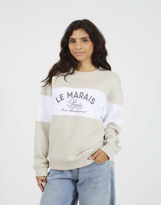 Brave Soul Contrast stripe panel crew neck sweatshirt in stone