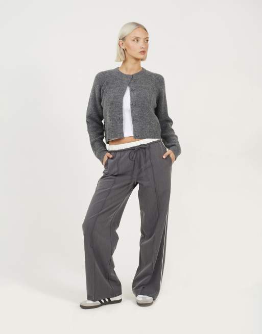 Brave Soul Contrast waistband tailored trousers in grey