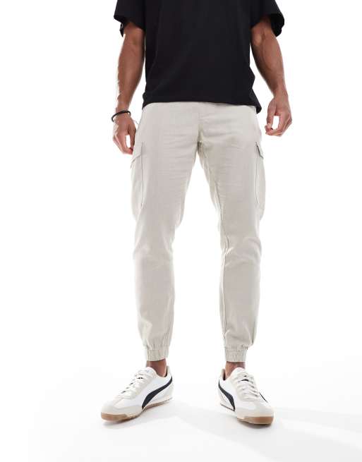 Brave Soul Cotton linen blend cargo trousers in light stone