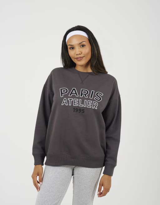 Brave Soul Crew neck embroidered sweatshirt in charcoal