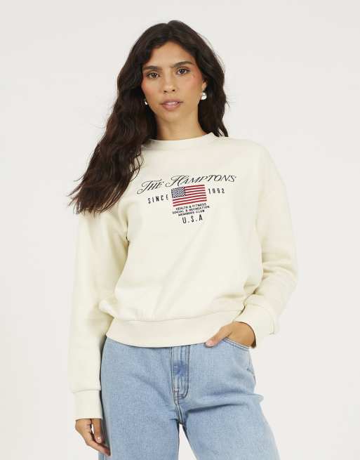 Brave Soul Crew neck embroidered sweatshirt in cream