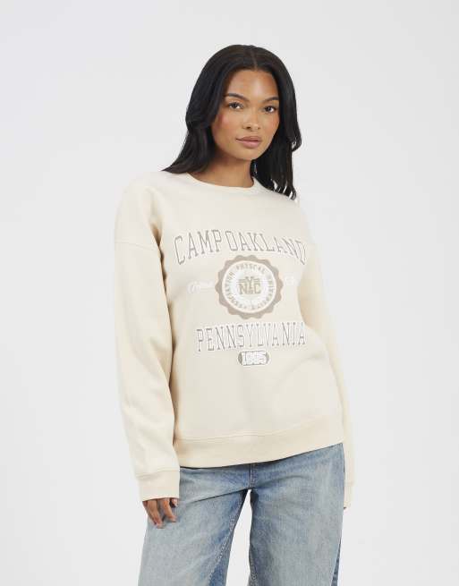 Brave Soul Crew neck graphic print sweatshirt in cream