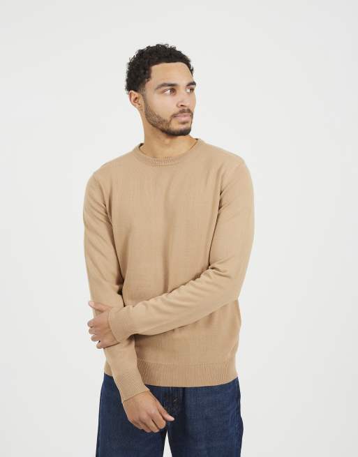 Brave Soul Crew neck knitted jumper in tan