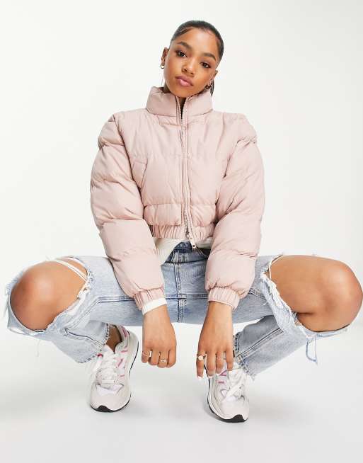 Brave Soul cropped puffer jacket in dusky pink