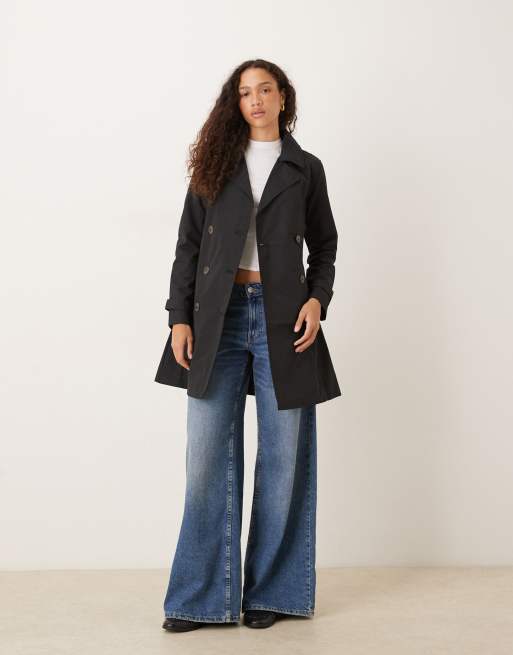 Brave Soul Double breasted belted trench coat in black