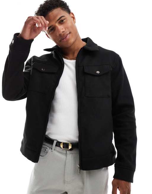Brave Soul faux wool full zip jacket in black