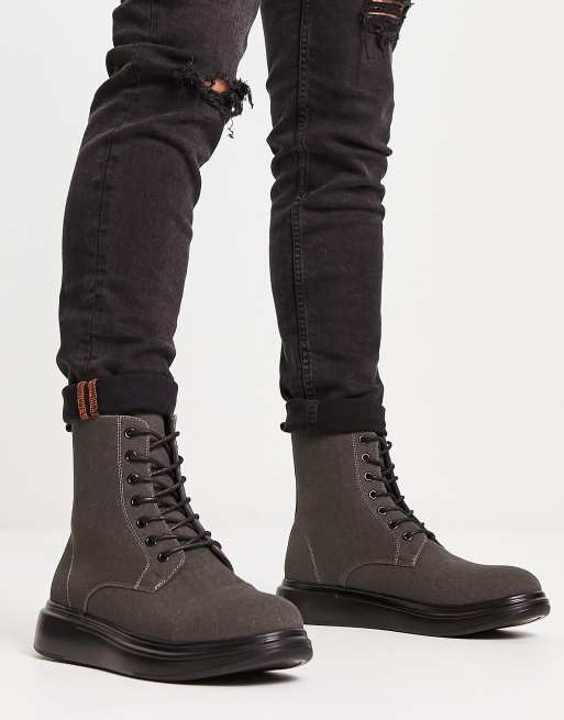 Brave Soul flatform lace up boots in grey faux suede