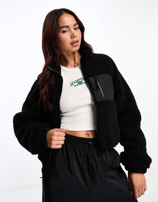 Brave Soul fleece jacket with pocket detail in black