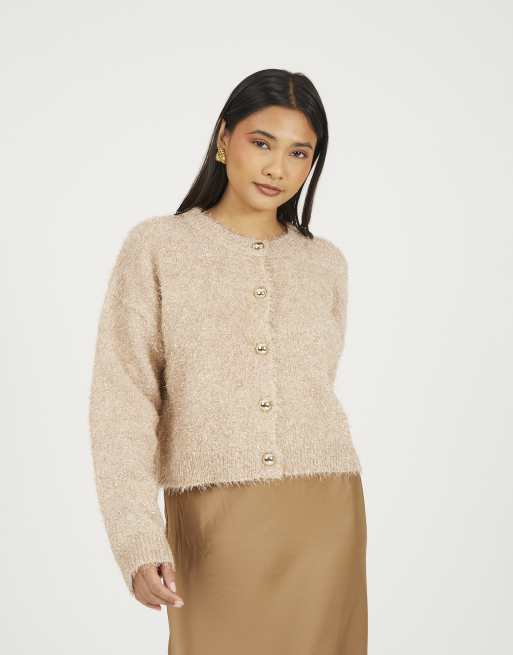 Brave Soul Fluffy tinsel knit cardigan in gold