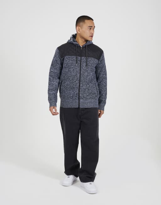 Brave Soul Full zip hoodie with contrast panel in black