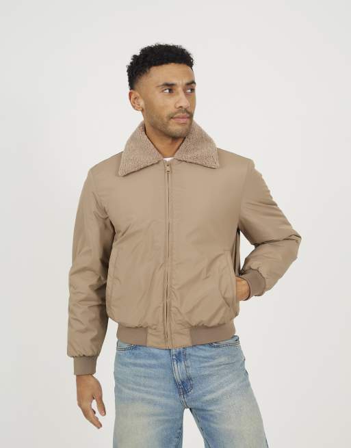 Brave Soul Harrington jacket with borg collar in stone