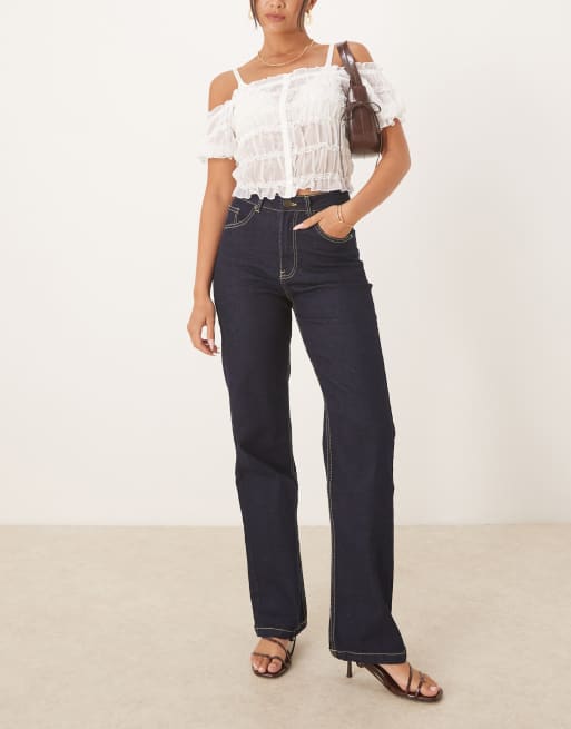 Brave Soul High waisted straight leg jeans in indigo