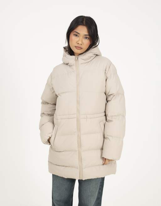 Brave Soul Hooded padded jacket with drawcord waist in stone