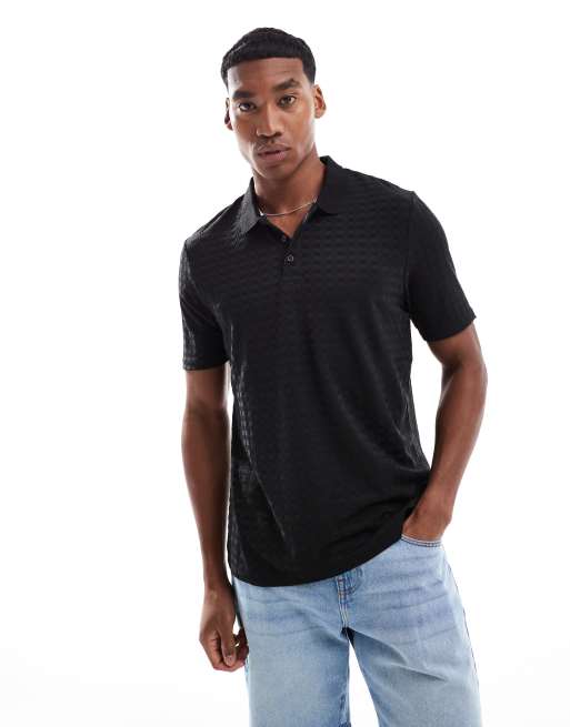 Brave Soul Jacquard polo shirt in black