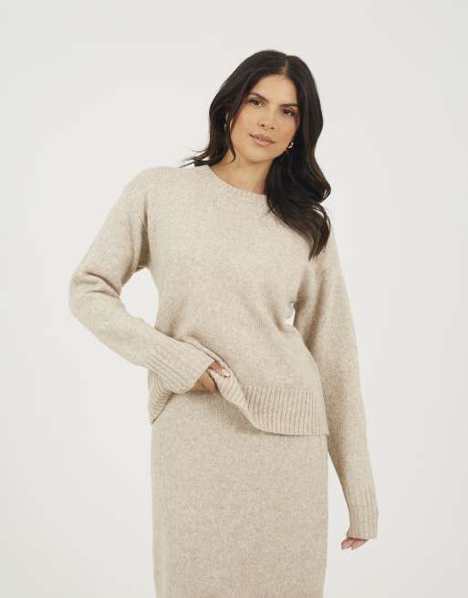 Brave Soul Knitted jumper and midi skirt set in light beige