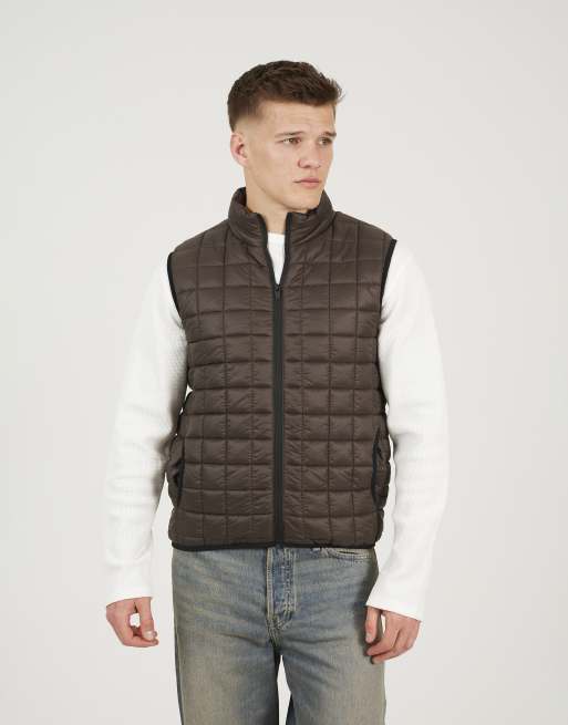 Brave Soul Lightly padded box quilted gilet in dark brown