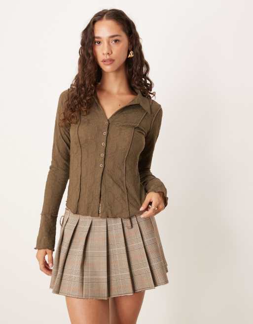 Brave Soul Long sleeve collared textured jersey top in light brown