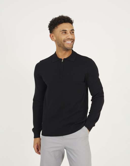 Brave Soul Long sleeve knitted polo in black