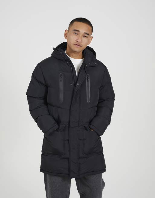 Brave Soul Longline hooded padded jacket in black