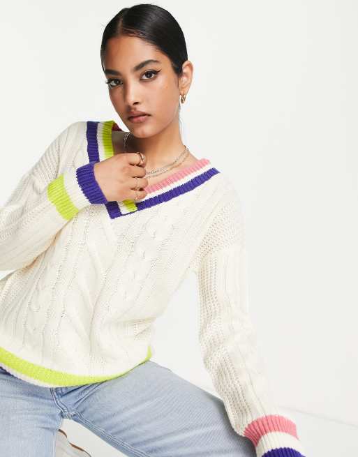 Brave Soul mugo v-neck jumper with contrast trim in ivory
