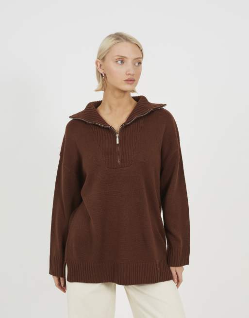 Brave Soul Oversized 1/2 zip knitted jumper in chocolate