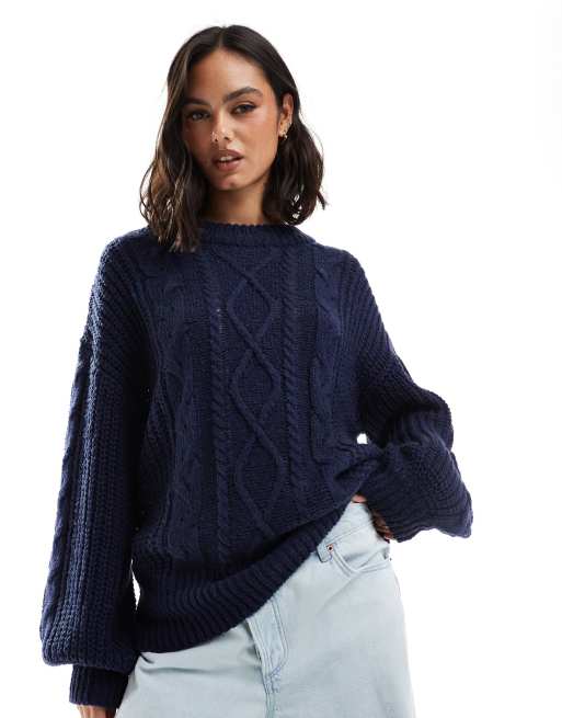 Brave Soul oversized cable knit jumper in navy