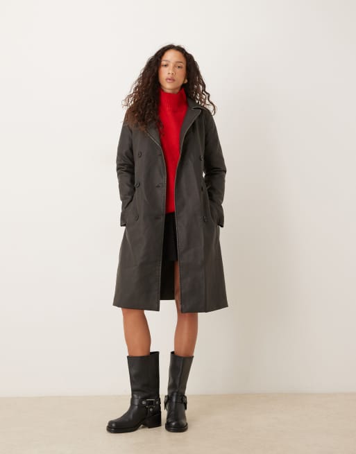Brave Soul Oversized pu double breasted mac in brown