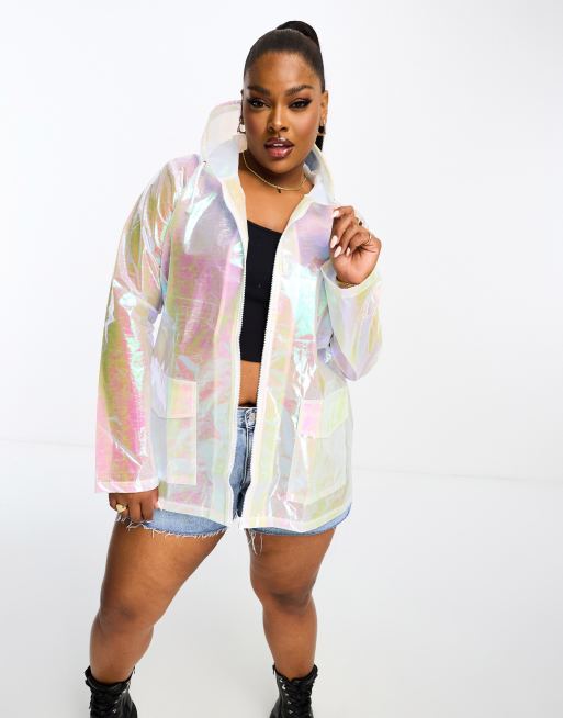 Brave Soul Plus festival hooded rain mac in iridescent white