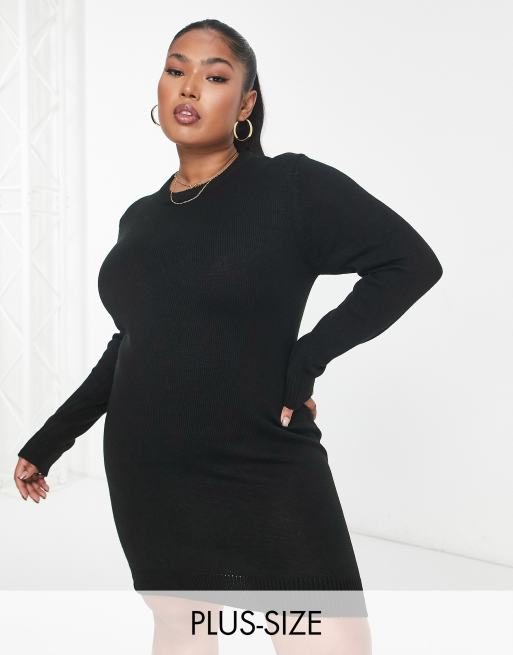 Brave Soul Plus grungy crew neck jumper dress in black