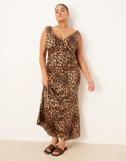 Brave Soul Plus leopard print sleeveless satin maxi dress in brown