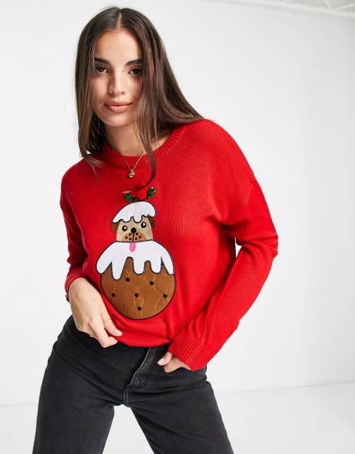Brave Soul pudding pug christmas jumper