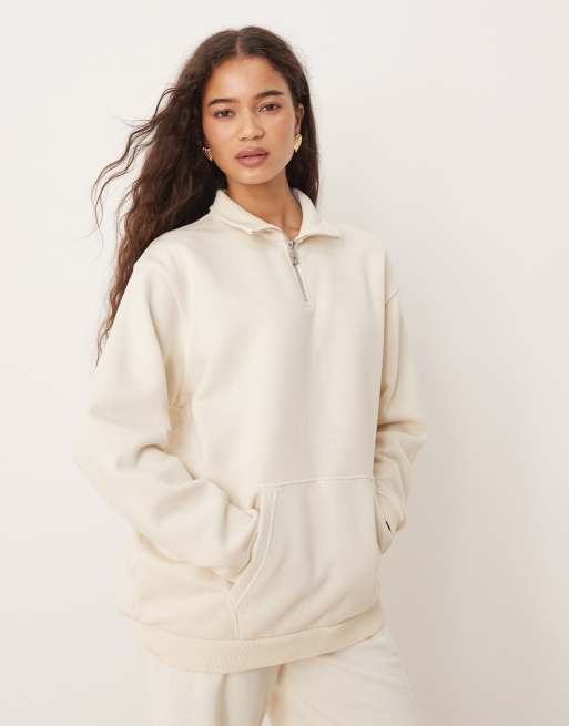 Brave Soul Quarter zip funnel neck sweatshirt in cream