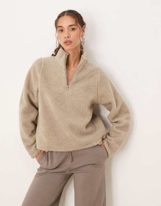 Brave Soul Quarter zip sherpa fleece in taupe