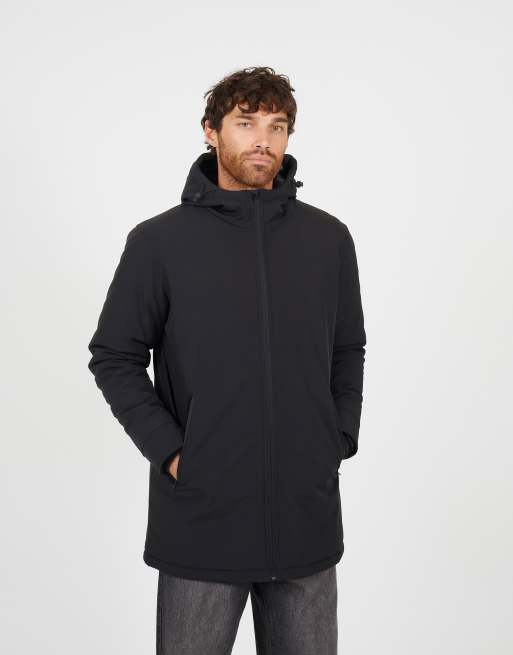 Brave Soul Quilted soft shell hooded parka jacket in black