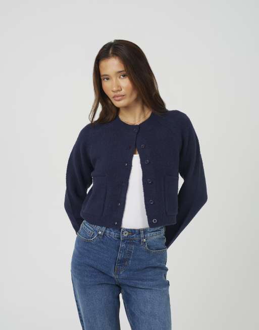Brave Soul Raglan sleeve soft knit cardigan in navy