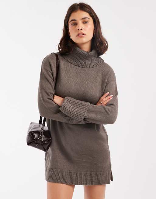 Brave Soul roll neck mini jumper dress in charcoal grey