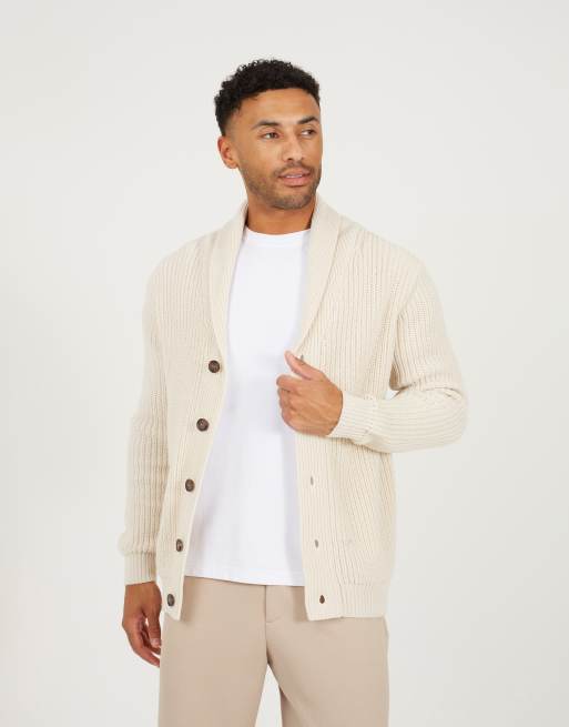 Brave Soul Shawl neck chunky knit cardigan in ecru