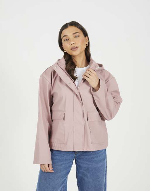 Brave Soul Short rubberised hooded rain mac in pink