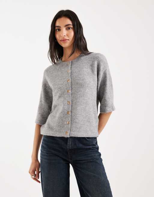 Brave Soul short sleeved relaxed fit knitted cardigan in grey