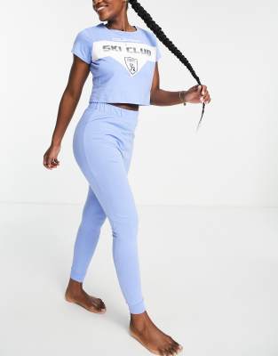 Brave Soul ski club long pyjama set in blue