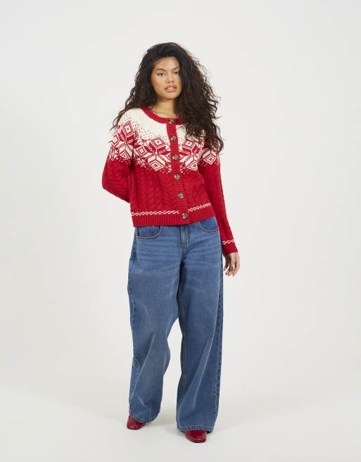 Brave Soul Snowflake fairisle christmas cardigan in red
