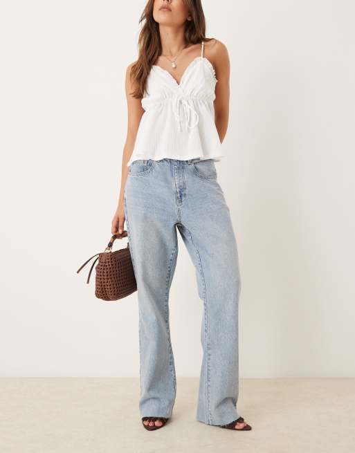 - Non-stretch denim: light-blue wash