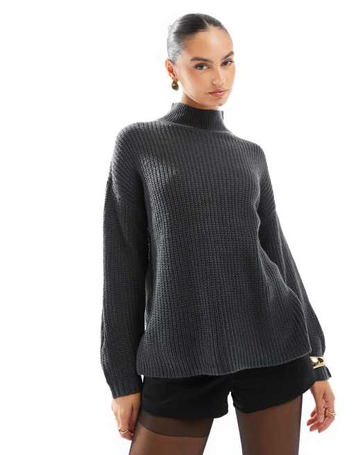 Brave Soul turtle neck oversized jumper in charcoal grey