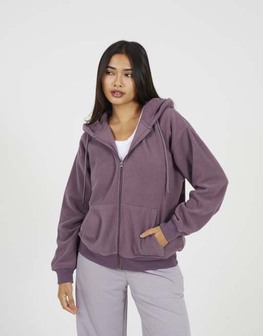 Brave Soul Zip through polar fleece hoodie in mauve