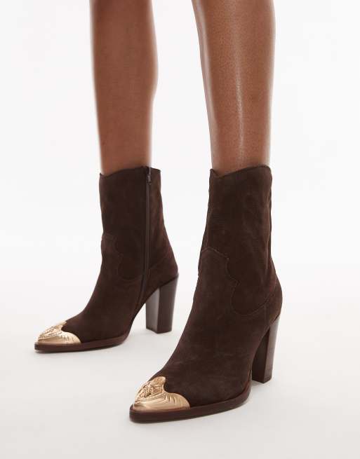 Bronx New-Americana heeled western ankle boots in chocolate suede