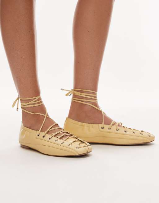 Bronx Ser-ajaa lace up detail ballet flats in leather butter yellow