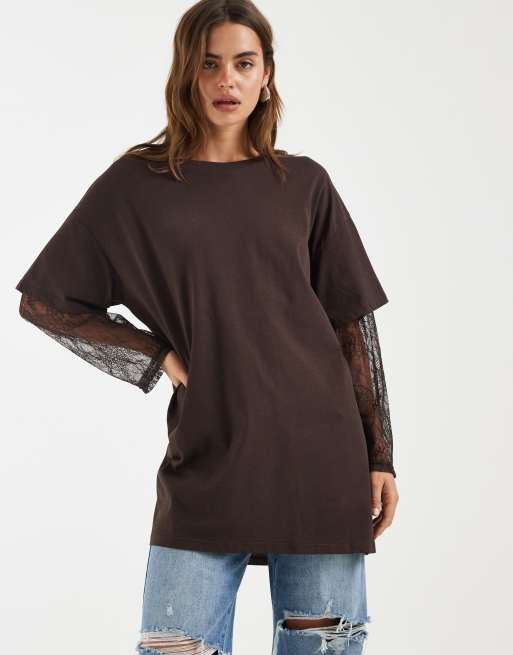 Bronze Snake Amanda lace sleeved tee in dark chocolate