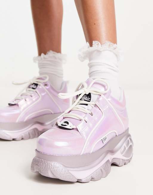 Buffalo London vegan classic platform trainers in pink metallic