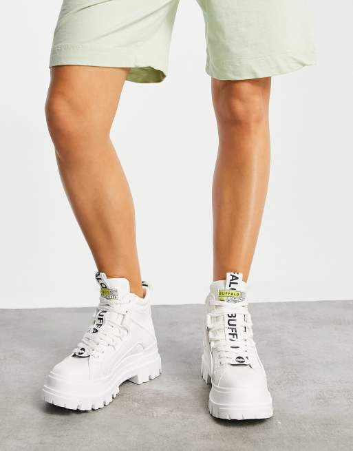 Buffalo Vegan Aspha flat ankle boots in white