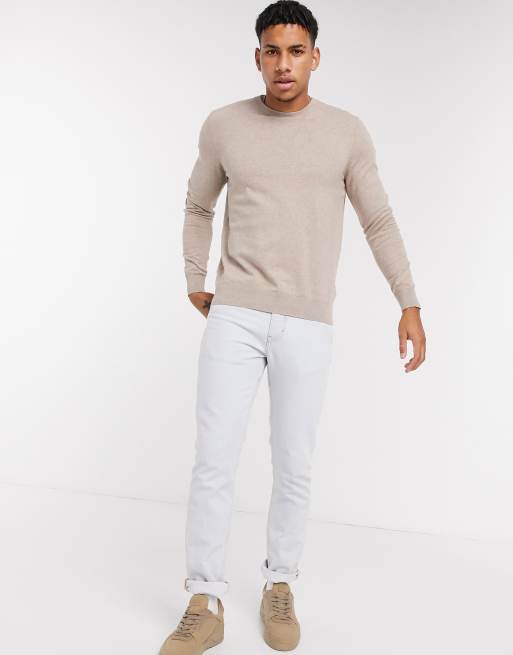 Burton Menswear cotton blend crew neck jumper in stone - BEIGE